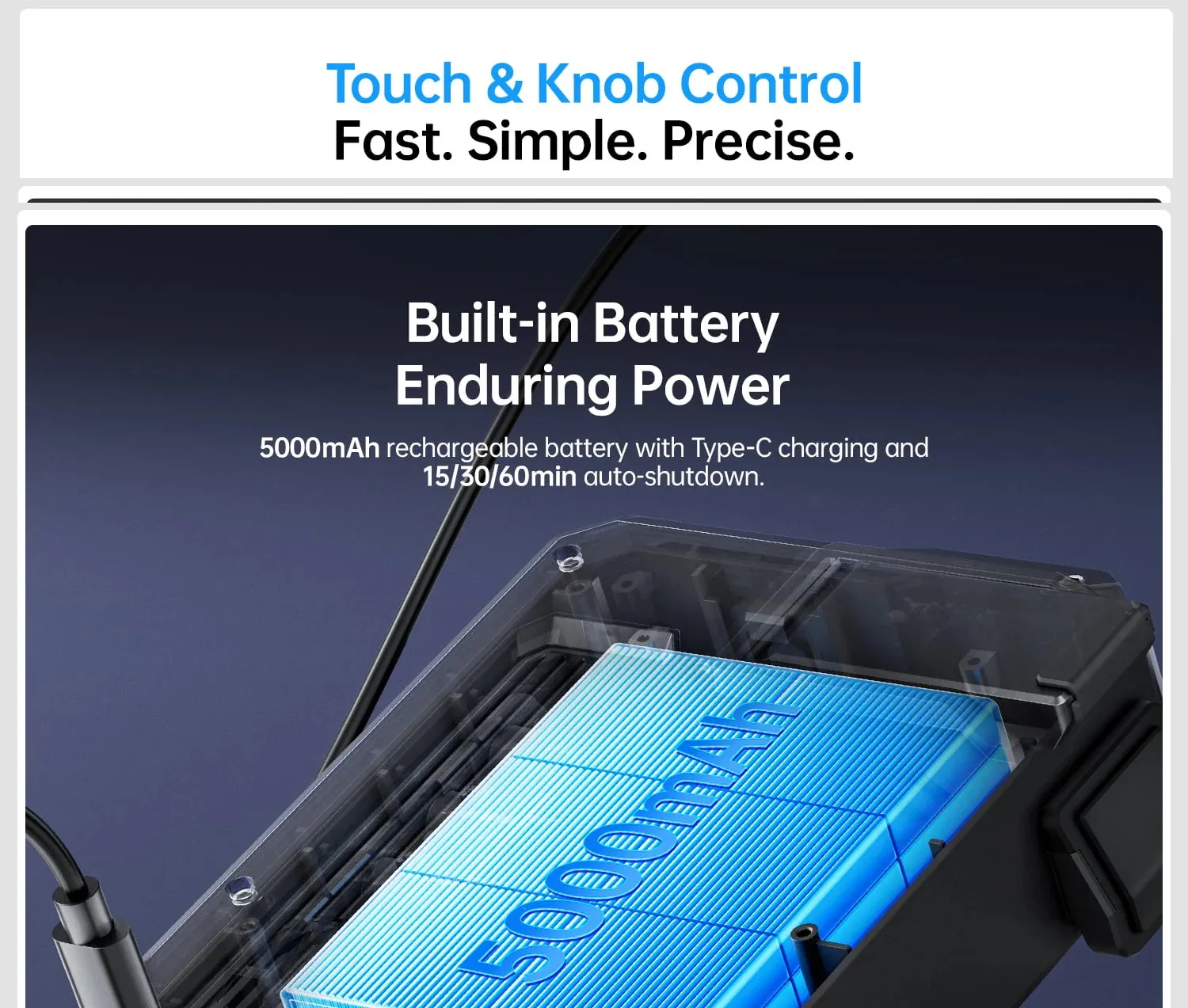 Diseño Compacto y Ligero - Cuerpo un 30 % más ligero con una potente batería de 5000 mAh.