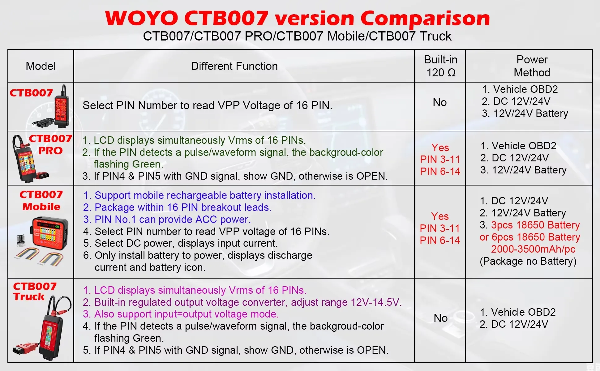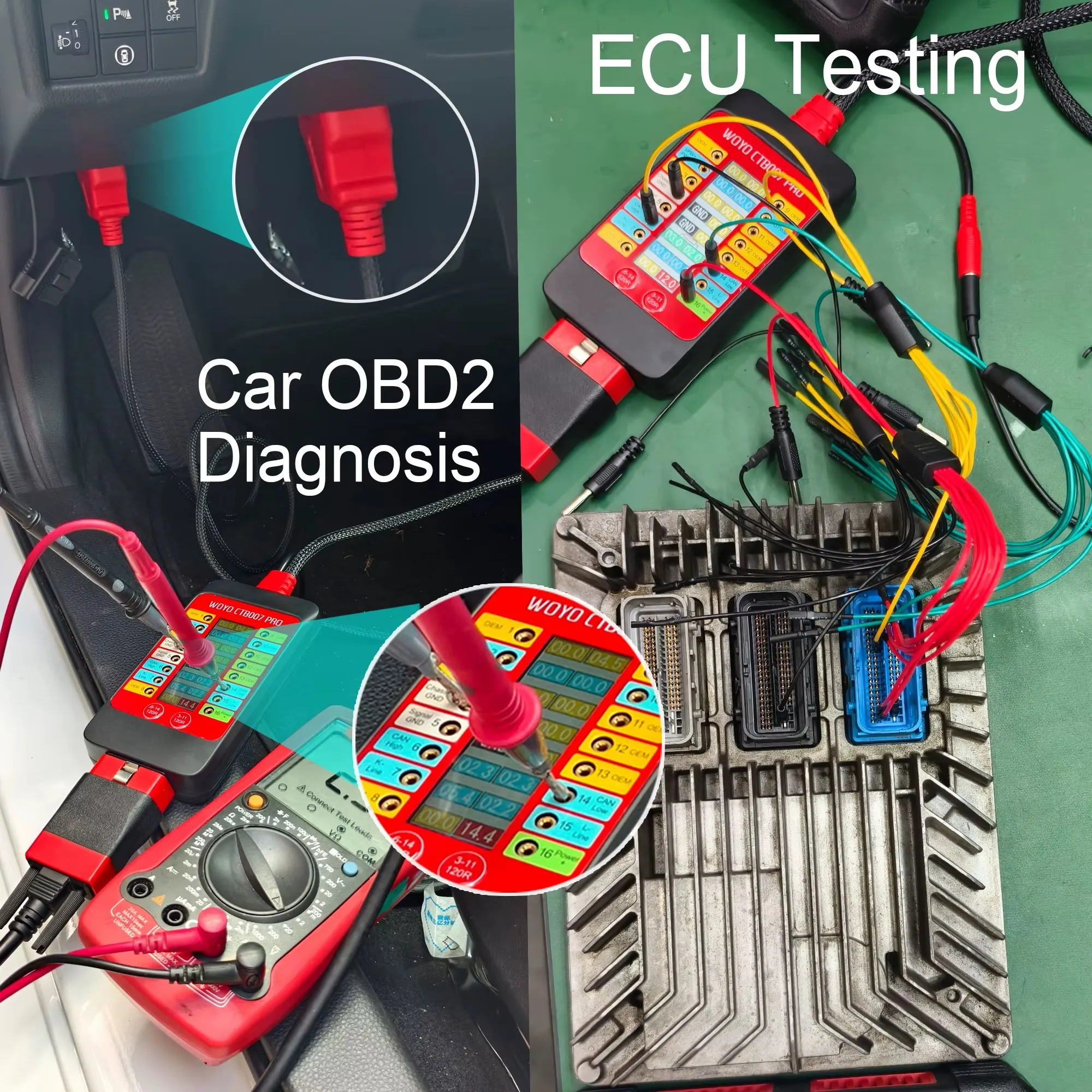 WOYO CTB007 PRO Caja de ruptura OBD2 con pantalla LCD Digital Vrms, herramienta de prueba de ECU en el banco, herramienta de diagnóstico automotriz, prueba CAN